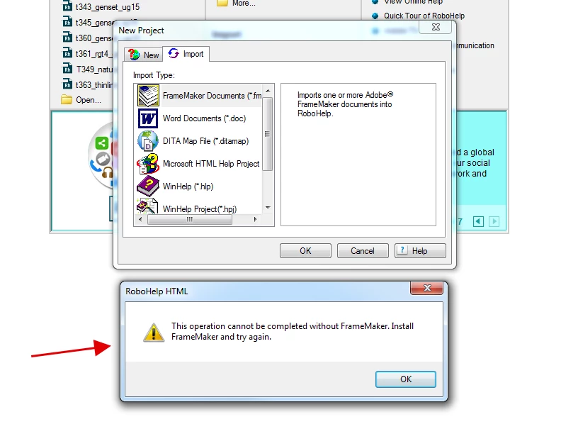 I have RoboHelp 11. I recently upgraded from FM 12 to FM 2015. After the upgrade I can not import FM books (12 or 2015) into RoboHelp. On import, I get the message "This operation cannot be completed without Framemaker. Install Framemaker and try again".