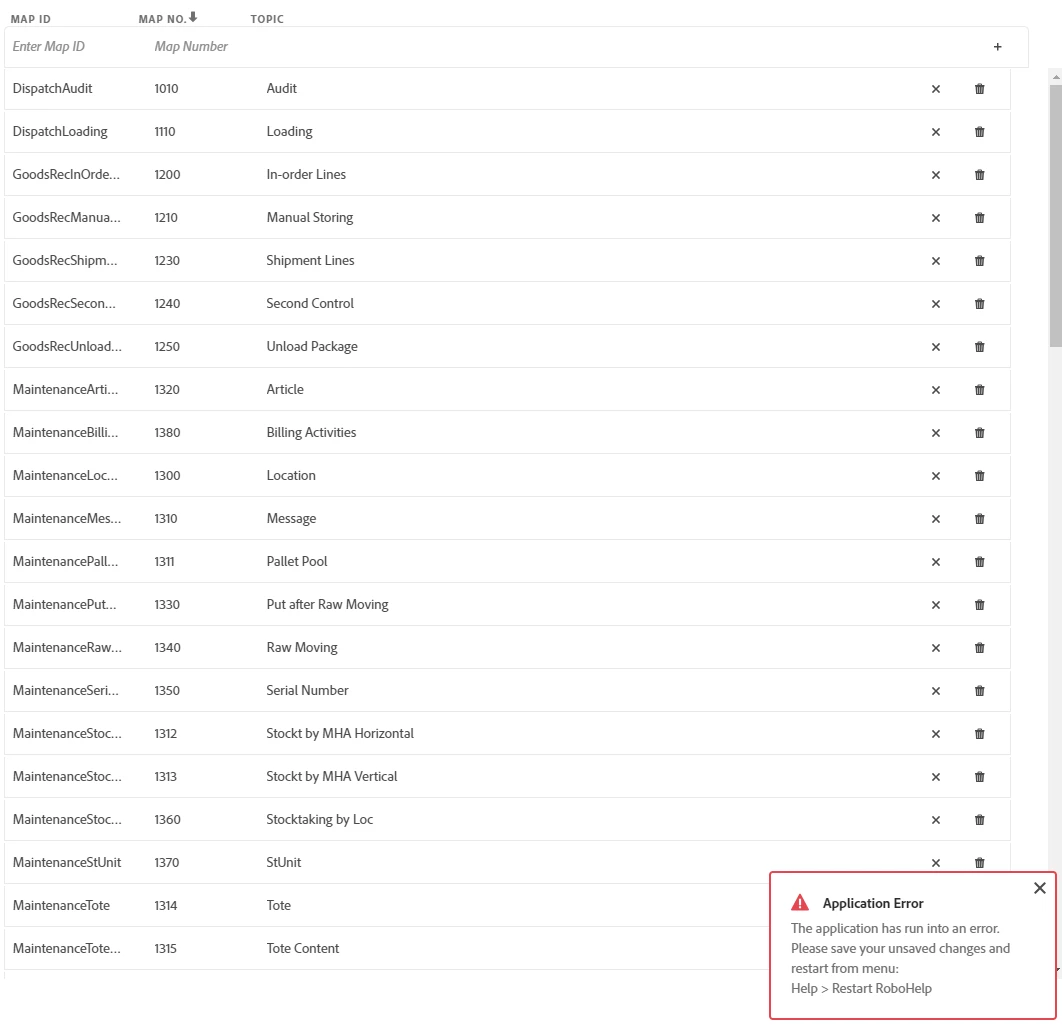 I'm currently working with Context Sensitive Help and I want to list my Map ID's according to map number. But as soon as I click on the tab to change the list order this red box pops up. Does anybody know why this happens and how to solve it?