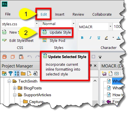 Is there any option in RoboHelp 2015 similar to Format Painter in Word? It would be great if I could just select text in a RoboHelp topic, click Format Painter, and then select text in a different topic to match all the formatting in the previous, so it's identical.