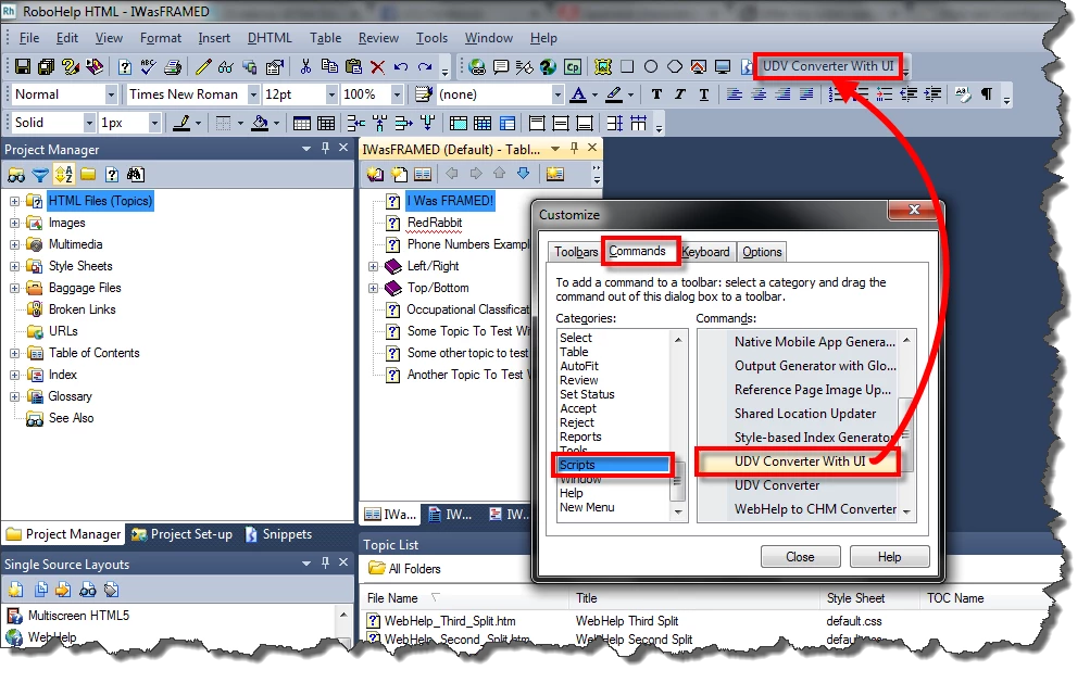 The user script has to be copied to the write protected folder "%programfiles%/abobe/.." where all the other scripts can also be found.