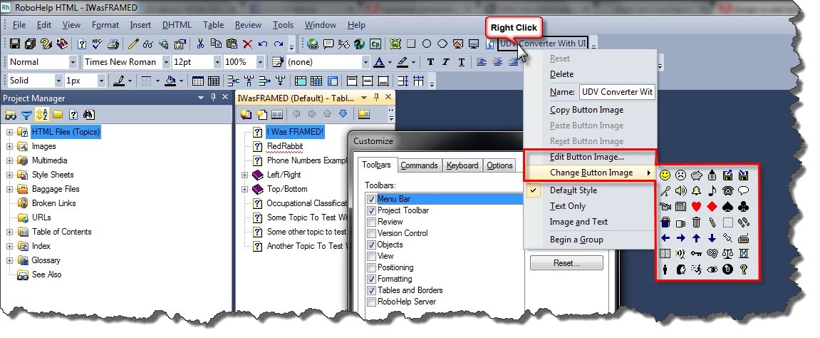 If you want to see an image in the toolbar instead of the script name, right-click the new area in the toolbar and choose an image.