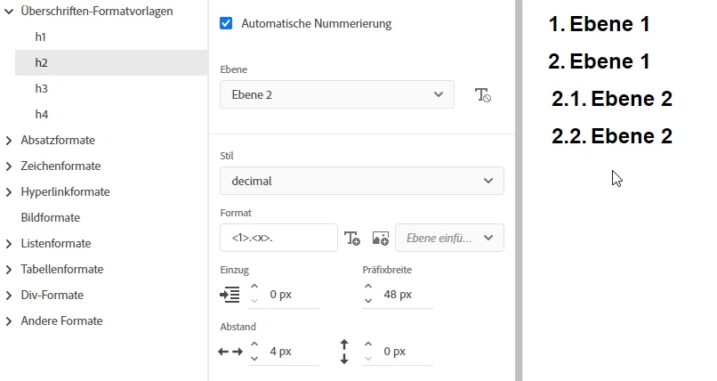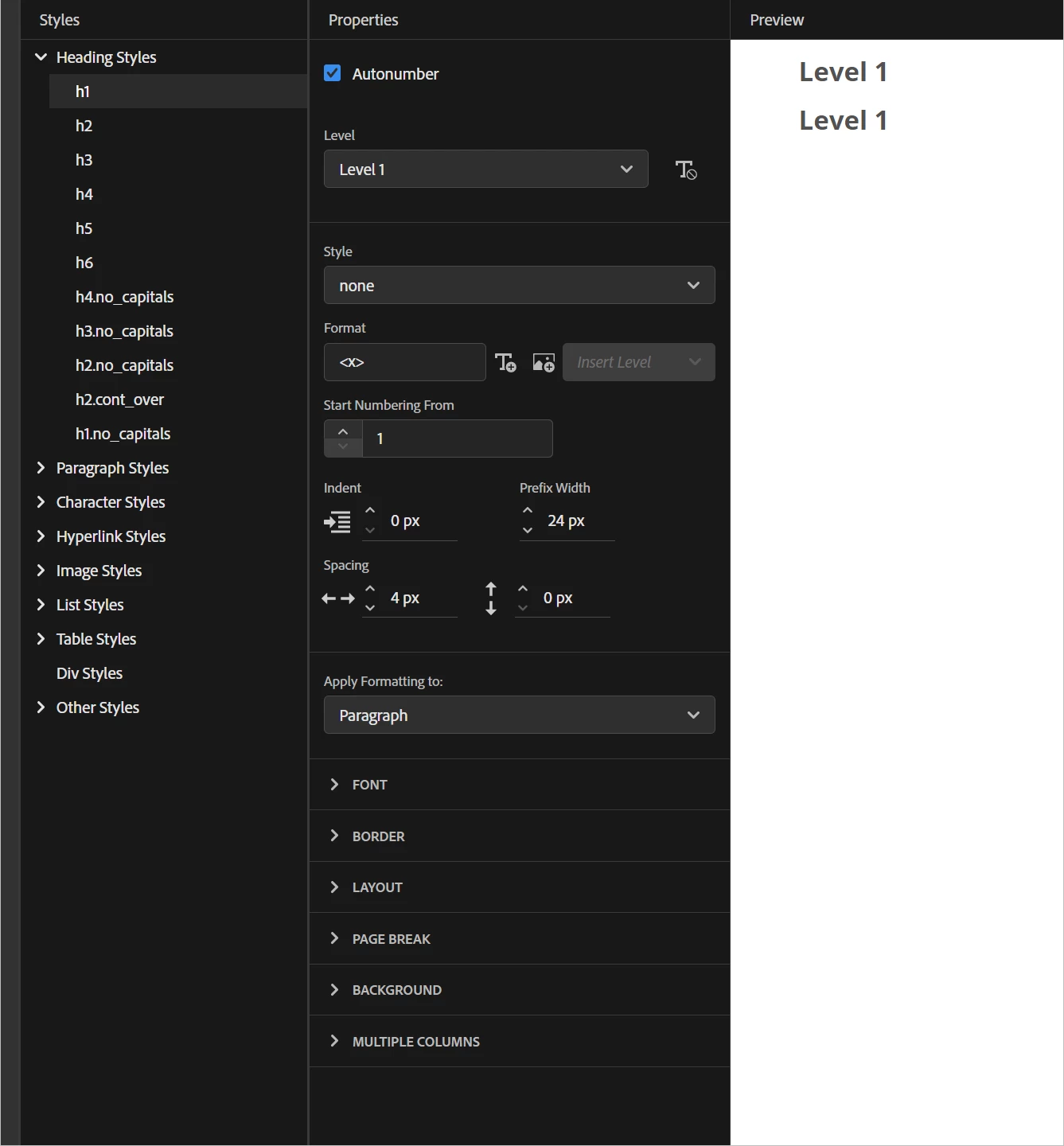 Autonumbering and Heading Styles - H1, H2 etc