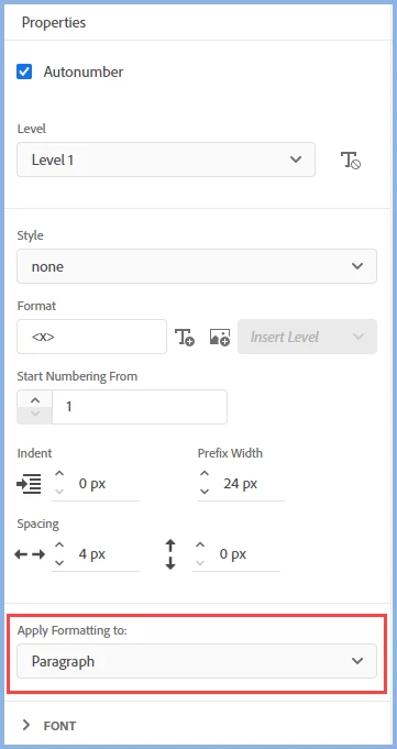- The user documentation says the levels each inherit from the level above, but I am not seeing that happen. My <h2> and <h3> headings aren't even getting any numbering consistently. It just pops in and out.