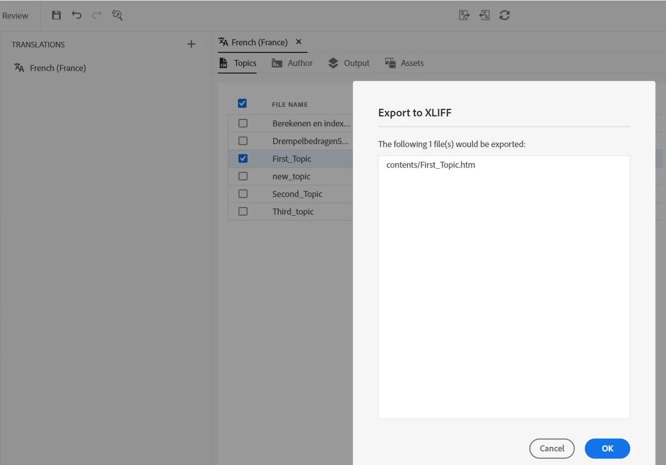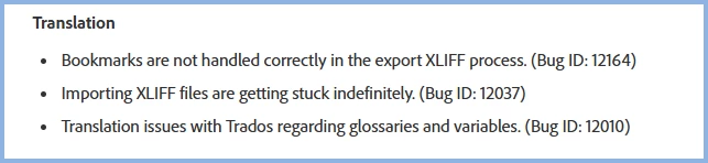 Result: bookmarks are not exported along with other text in the XLIFF file