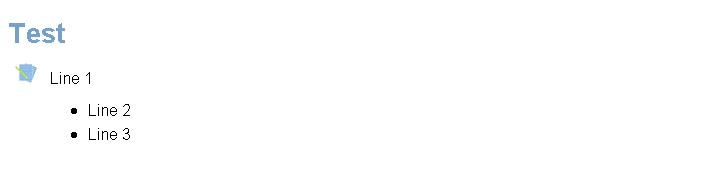This is what it looks like during development (I removed image bullet format to the subsequent lines and applied the round bullet format - which is the goal format).