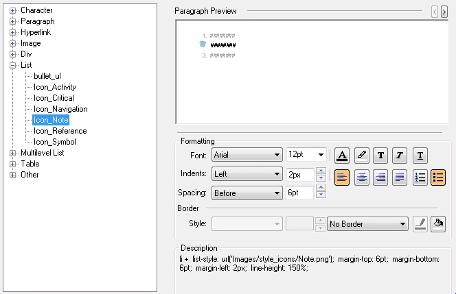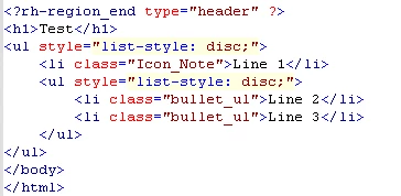 I am currently working on a WebHelp project in RoboHelp HTML (RH10) and am using bulleted lists. The issue is that some of our bulleted lists use an image bullet for the first line and then the subsequent lines beneath should use the standard round bullet. During development, within RoboHelp, there doesn't seem to be an issue with this; however, when I preview and/or generate the project, the subsequent lines beneath take on the properties of the first line resulting in all of the lines having the image bullet.