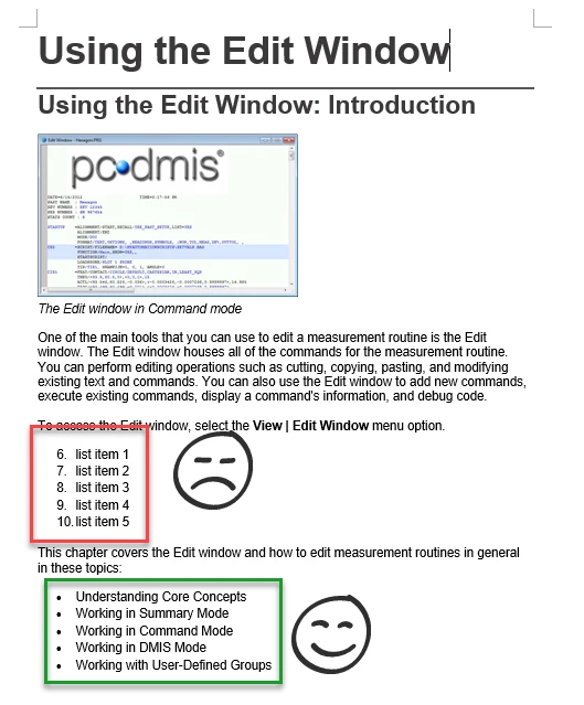 I ran into a problem where some bulleted lists become numbered lists automatically when I generate the Printed Output from the Printed SSL. It's a strange problem because some lists with identical HTML codes later in the output are fine. It seems to be happening only with the first list of the output.