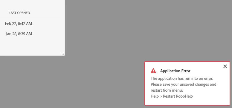 I've tried opening both RH 2020 sample projects. Neither one would open. I'd only get the "restart" error (see screenshot).