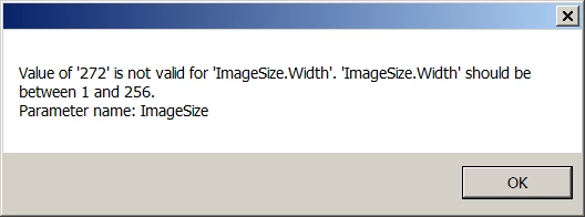 Today, when trying to delete a file, my system began complaining of an "Invalid Parameter". After this, although links to the file are deleted, the file still appears in the Project view. Additionally, when trying to check in my changes, the system complains that the "ImageSize.Width" parameter is set to 272, and the value should be from 1 to 256.