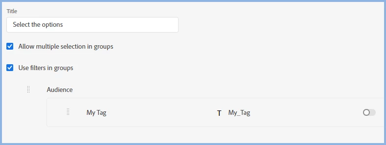 Below is what is display for our employees when they select the filter option on our published version which corresponds to our condition tags.