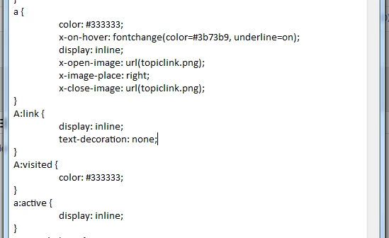 I want to include an image to appear at the end of a hyperlink similar to a twisty. In RoboHelp 2015, I can click the Set Twisties button and use the Select Twisties Images dialog box to add an image. The image appears in the Character Preview box but not in the topic. Is what I want to do possible or am I stuck manually inserting images over and over again?