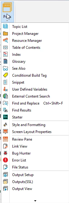 I'm using RoboHelp 2015 to create Responsive HTML5 and printed documentation output. I am starting to investigate the use of context-sensitive Help. The RH documentation mentions a "Project Set-up Pod" but I see no such pod. I've had other issues with my RH2015 installation--specifically trying to generate printed documentation that resulted in several tech support calls. Perhaps this is either residue from that issue, or the pod is carefully hidden! Here's a screen capture of what's listed when I click Pods: