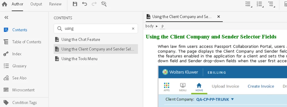 1. Use RoboHelp to open a topic (htm file).