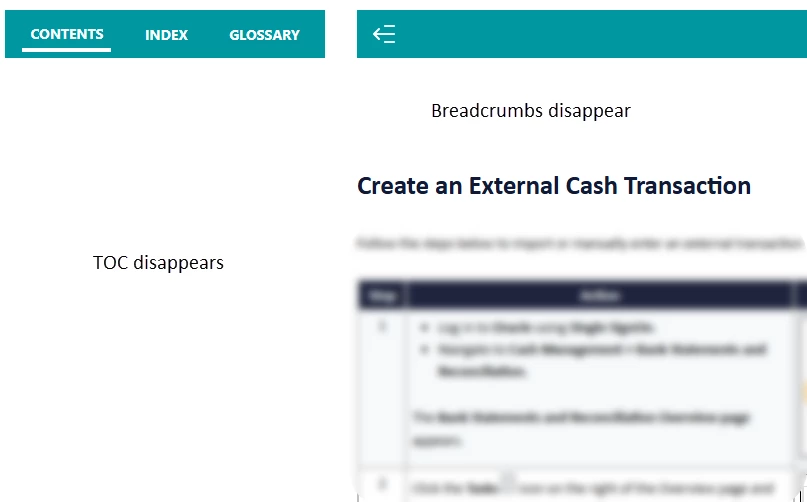- I have a parent project and several child projects. I generate output using the merged projects feature. Upon publishing the output, the TOC is visible in the left pane only for 2 of the child projects. When I access a topic from subsequent child projects, the TOC and the breadcrumbs disappear. I have customized the Studio template using RH’s UI to change the color settings, some font settings, etc. This issue didn’t occur until 2 weeks ago. I have tried using an unedited Studio frameless template and regenerating the merged output from scratch to a clean folder. I use the Topic Layout globally from the output preset in the parent project. I’ve included images for reference - tocBrdCrmbVisible, chld3TopicClk, and tocBrdCrmbDisappear.