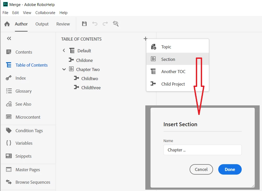 Are there any known issues merging child projects at different "levels" with a parent's table of contents? For example, if my parent project had a single child project merged in to create an initial section/book, but then a second section/book ( say "chapter 2", where this section has been created within the parent itself) which consisted of multiple child projects merged in? To confirm - I'm not suggesting any *content* (by way of topics) within the parent project, simply some sections so I can have multiple children within the same book. I will ensure the child projects are all located at the same level in terms of the files themselves (as per the merged demo by Peter Grainge, which has been incredibly helpful!)