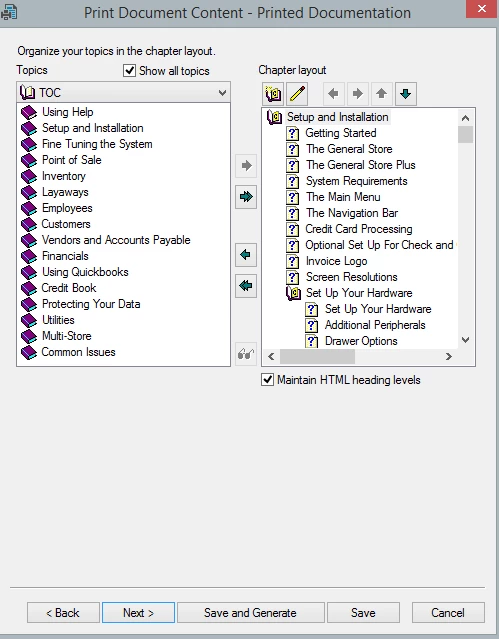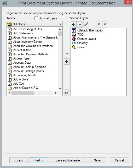 Now, when I originally created this entire piece, I selected the Microsoft HTML Help (CHM) function, however, when I did this in previous versions, it worked fine. I am assuming since the 'section layout' is basically empty, there is nothing moving there? Do I have to create this entire thing by hand?