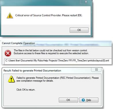 I use a Robohelp project with tfs source control and after the latest upgrade of Robohelp, error messages are always display when i use the publishing web help (chm) as shown below :