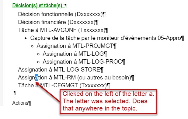 When I click anywhere in the text, RH will select the lettre on the right of the cursor?????!!!!!