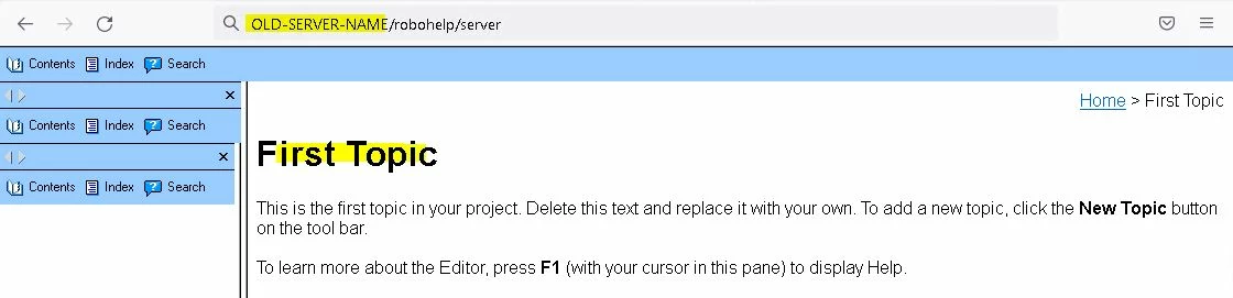 Url : OLD-SERVER-NAME/robohelp/server