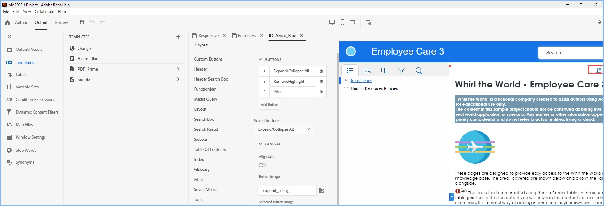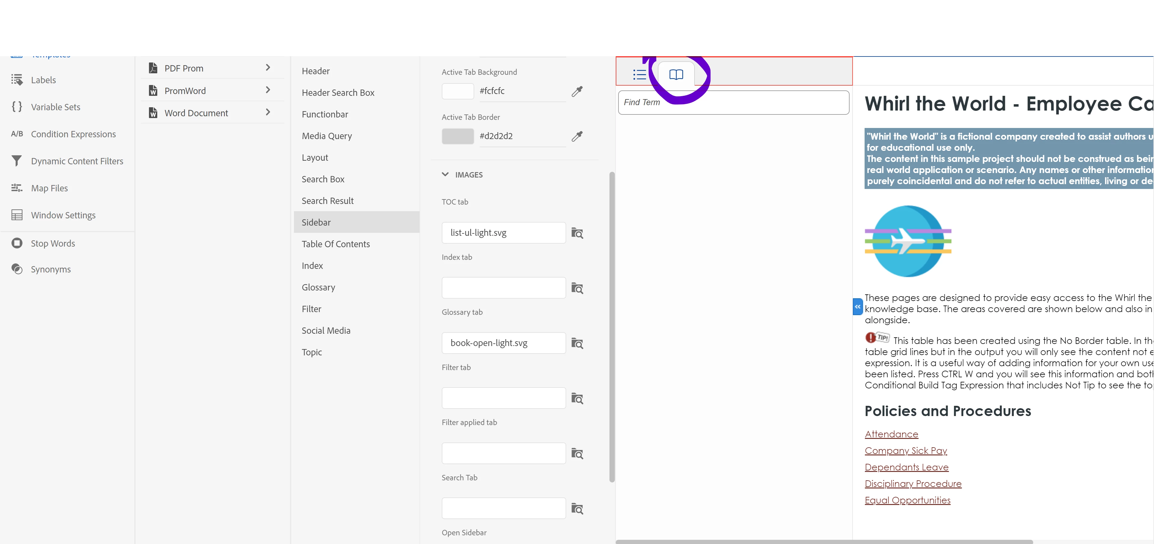I was wondering if there's a way for deleting the Glossary button from the sidebar. I am using a HTML5 preset and Version 2022.1.188 of RoboHelp.