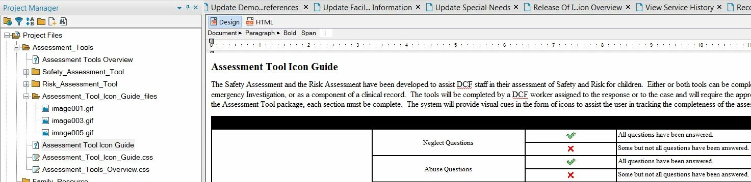 Recently, I uploaded a new Word document into my RoboHelp project which contains a table. When I did this, I expected that it would show up as a new topic. But in addition to the new topic (Assessment Tool Icon Guide), a folder appeared with three gif files.