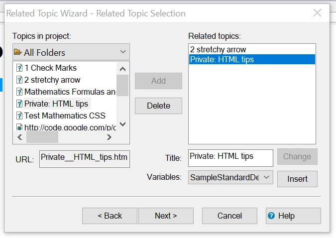 Does anyone have a script to create a "Related Topics dialog" such as in 2019, and is not in 2022, so that a popup menu can be created for a list of topics. Ideally, the dialog would have ability to add links from the entire topic list, to an adjacent list that becomes the popup menu content.