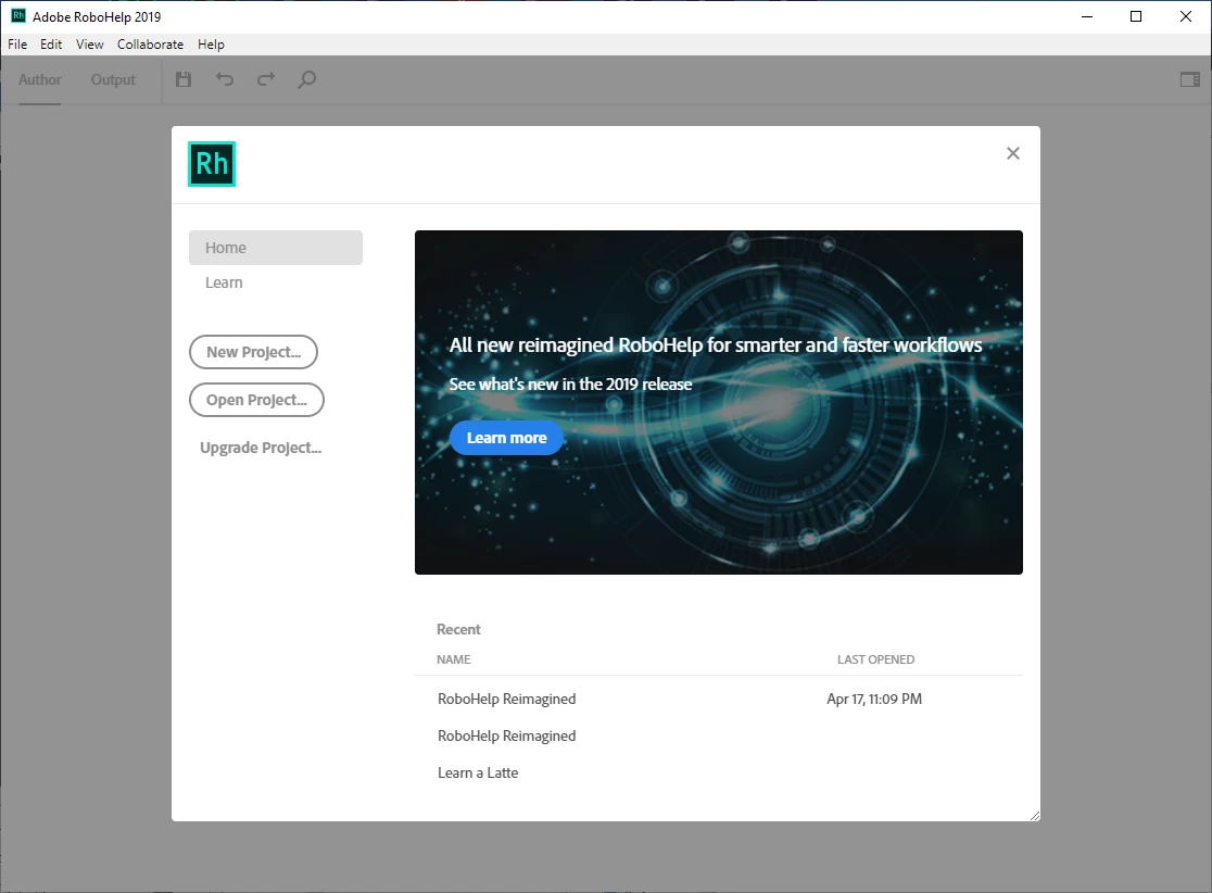 I can launch the 2020 interface using samples included in RH2019 for RH2020; however, I can't find a menu item in the toolbar or otherwise to open an RH2019 project in RH2020.