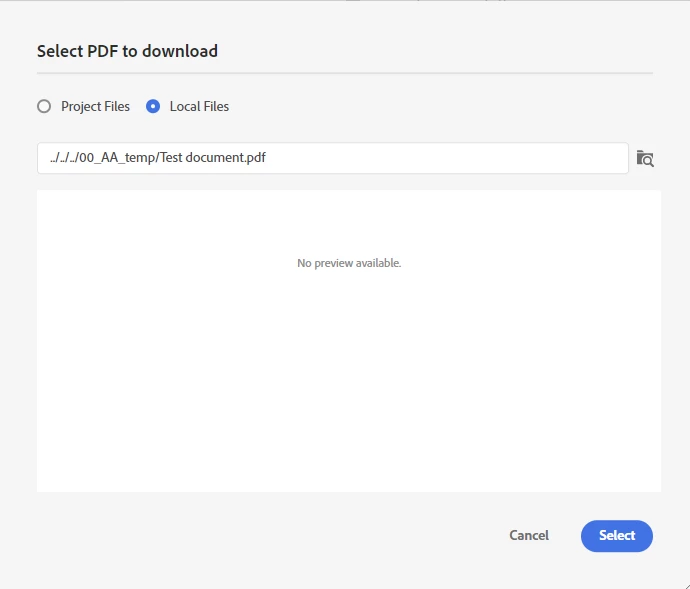 It will show the relative path but when you click Select, RoboHelp will change that to the Assets > Docs folder and import the file.