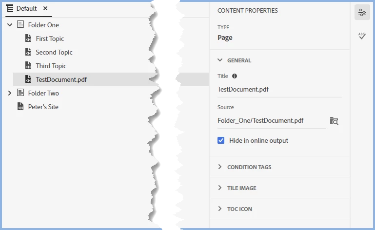 In the project under Contents I created a folder called FolderOne and added a PDF called TestDocument.pdf