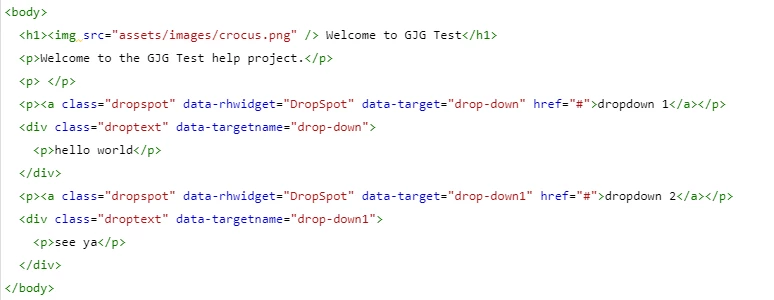 - I imported the troublesome topic to a fresh RH2020 project and have the same symptom. Another topic in the same project opens the drop-down text as expected.