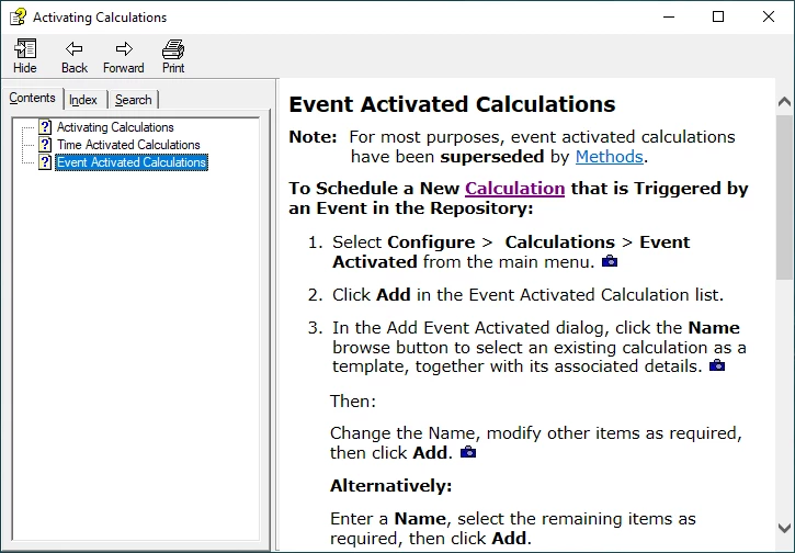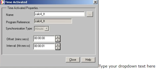 <p>Select <span style="font-weight: bold;">Configure</span> &gt;  <span style="font-weight: bold;">Calculations</span> &gt; <span style="font-weight: bold;">Event Activated</span> from the main menu. <a class="dropspot" data-rhwidget="DropSpot" href="#"><img alt="" border="0" height="13" src="assets/images/Images/CAMERA ICON.JPG" style="border: none;" width="16" /></a></p>