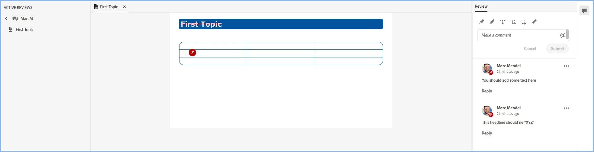 What version of RH are you using? Have you had a look at Peter's site to see how the Review function works - https://www.grainge.org/RoboHelp_Tour/rh2022/reviewing/reviewing.htm