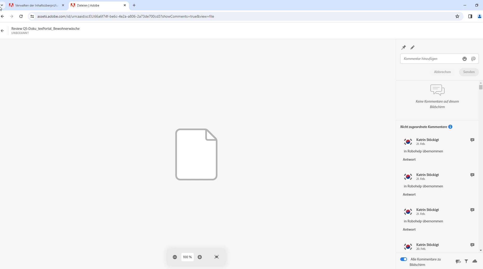 When we use the button "All responses" in the Mail from Adobe Creative Cloud it only leads to the review itself without any content. (Screen_3)