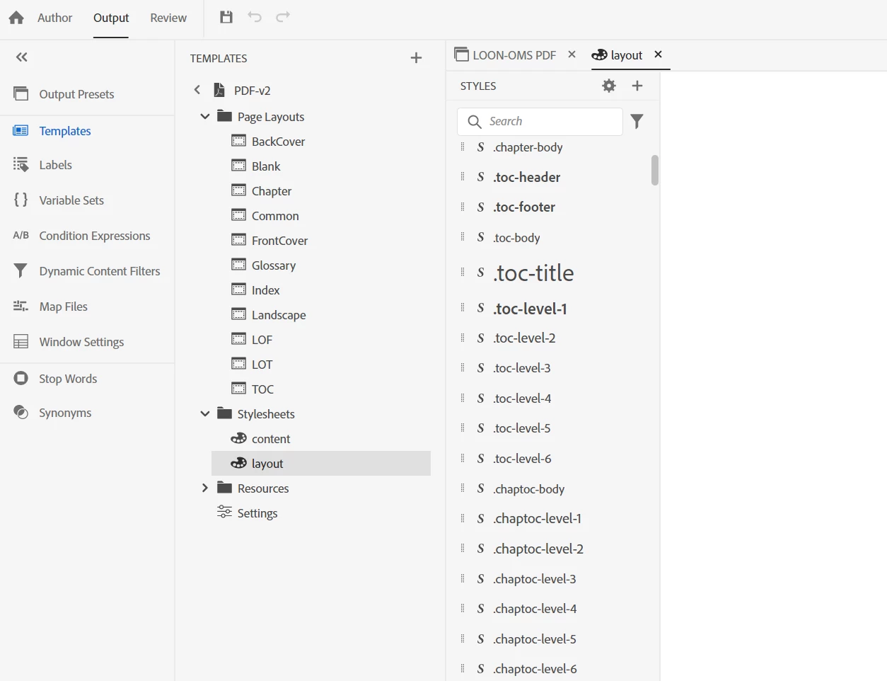 Edit the TOC styles for PDF output