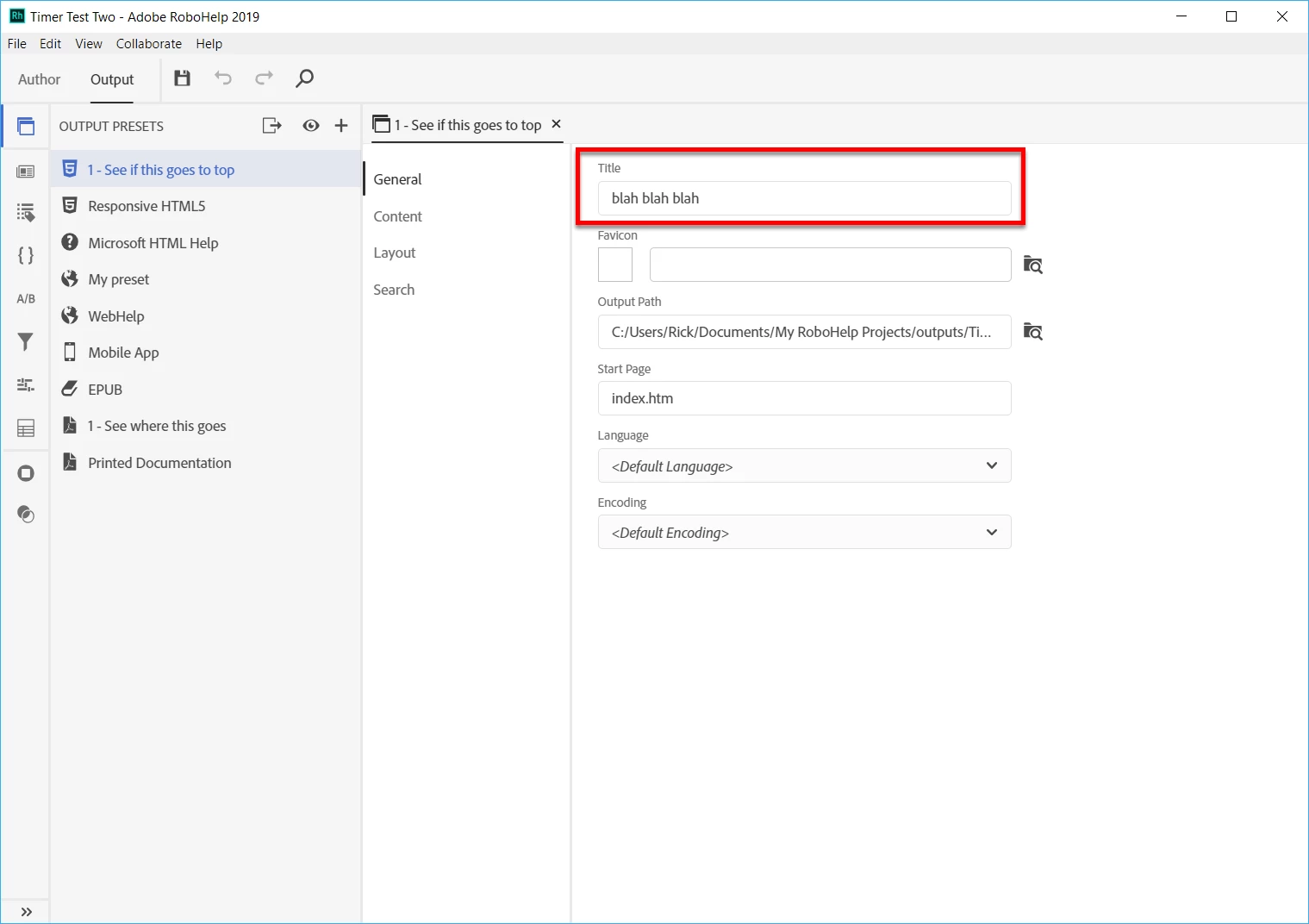 Following the sample project, I assume "Employee Care 3" is the project's title, but changing the "Project Title" in my project's Project Settings does not change the header.