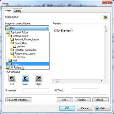 There are two things that would make this much faster for me. The first would be for me to be able to tell RH which folder I want it to look in for my image files so that I don't have to navigate every time I insert an image. The second would be for RH to show me image files even if they haven't been added to a document in my project.