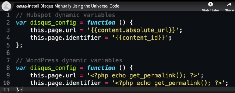 - For each topic (webpage) the Disqus script in the footer of each topic requires 2 unique pieces of information: the PAGE_URL and a PAGE_IDENTIFIER. Actual script provided below, additional info/details from Disqus here: https://help.disqus.com/en/articles/1717084-javascript-configuration-variables