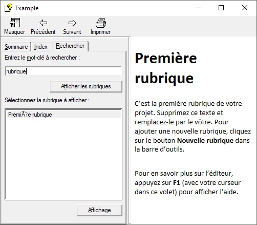 Also, when I search the word "Première", the CHM show a window with "No topic found". So I can't search word with accents and it is problematic with a french project.