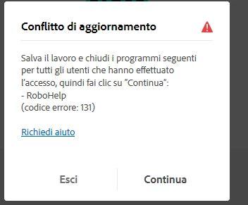 I have to update robohelp 2022.2.22..in robohelp 2022.5.0.(I have a subscription) but I can't. The blocking error code is 131. I closed the pending TASKS from ACTIVITY MANAGEMENT but it still doesn't work. What can I do? thanks daniela