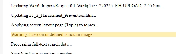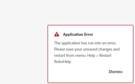 - When generating frameless output, I get the "Application Error... Restart RH." NOTE: the output generates just fine underneath the error message. It will also publish to SharePoint just fine. From then on, every time I generate output, I get the same error, while the output generates & publishes just fine.