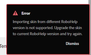 Now we need IMPORT to my computer that has the same version of Robohelp 2020.8.34 and it shows us the following message: