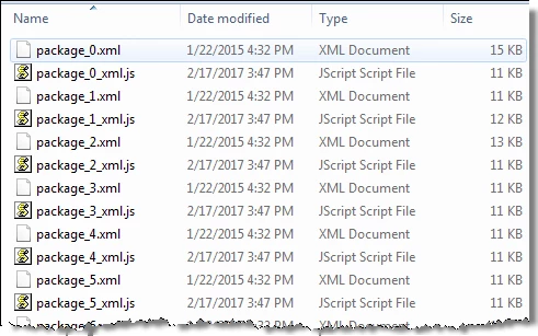 I seem to now have two versions of the package files, one with the .xml extension and another, identically named, but with an additional .js extension added on. Please see the image below.