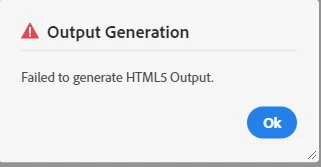 I'm trying to generate an HTML5 output and get this error (Robohelp 2019). Anyone know why this might be? I already tried closing the project and opening it back up.
