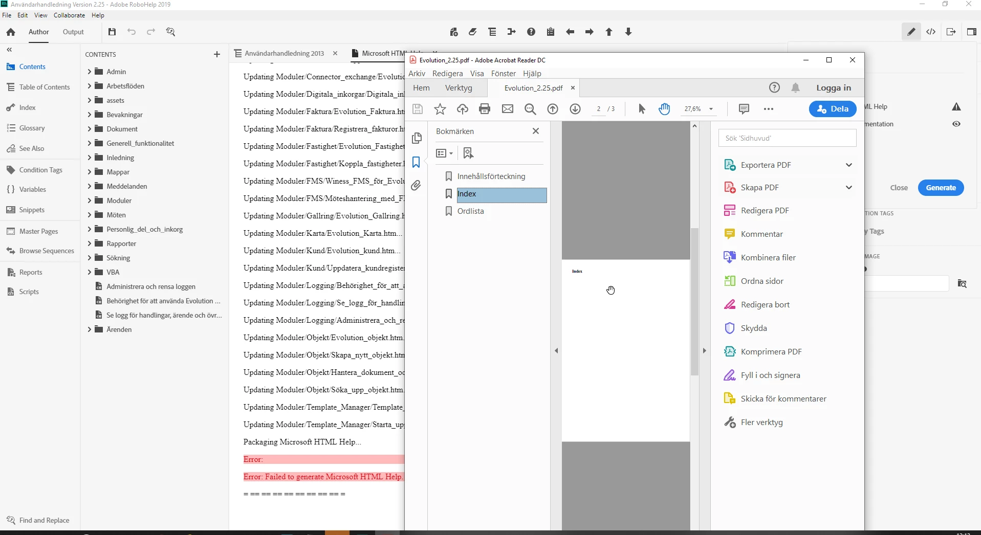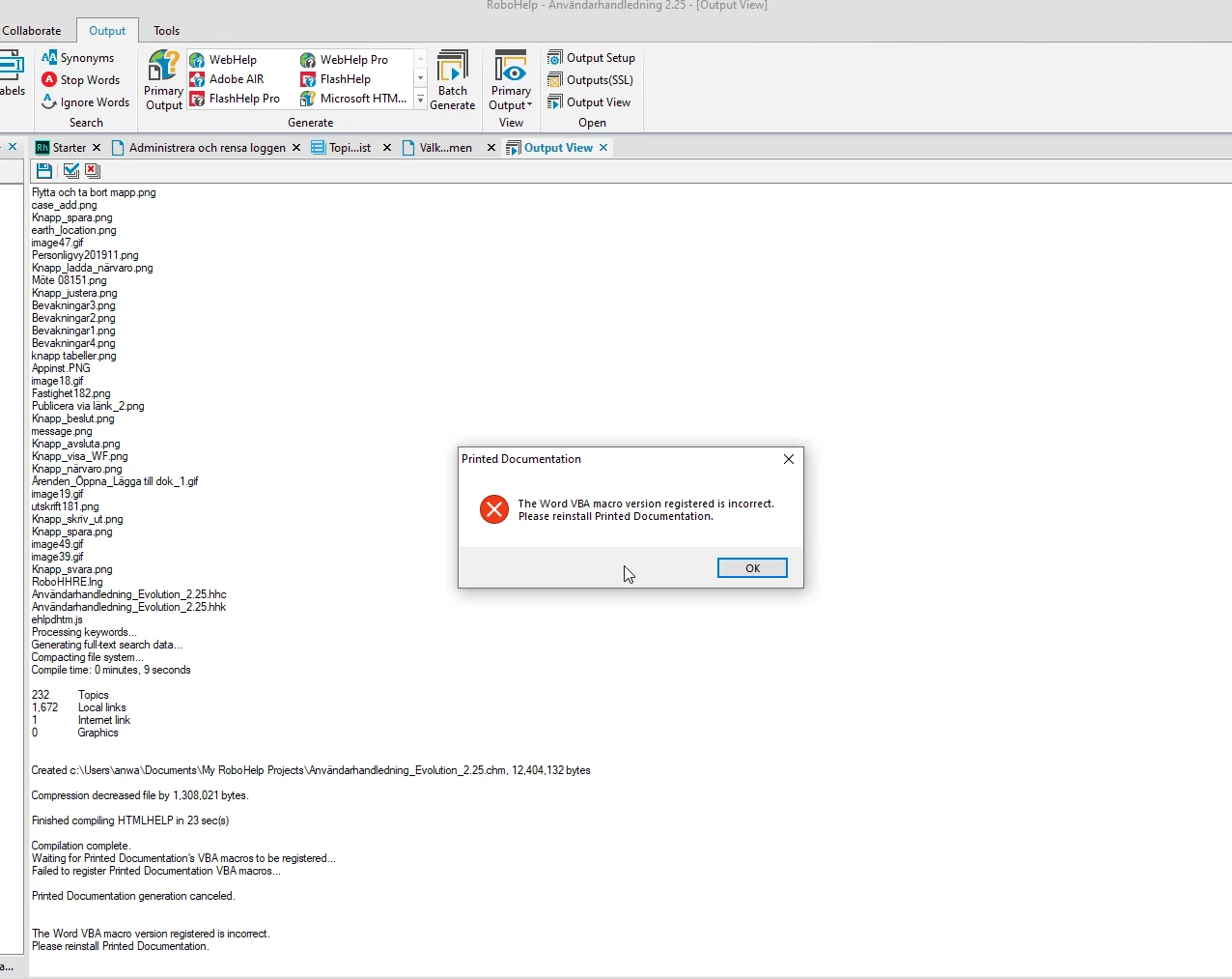 I downloaded RoboHelp 2019 (free trial) since our company had Robohelp 9 and then had problems with generate a printed docmentation, it only worked to generate microsoft HTML help and we need both, it always says that we need Word 2000 or later and that we have. So i thaught we should try 2019 to see if we just had a to old version of robohelp but now when i try to generate a printed documentation it says error failed to generare printed documentation but I cant see what the problem is. Do you have any solution? I need to know that it will work before we buy the product.