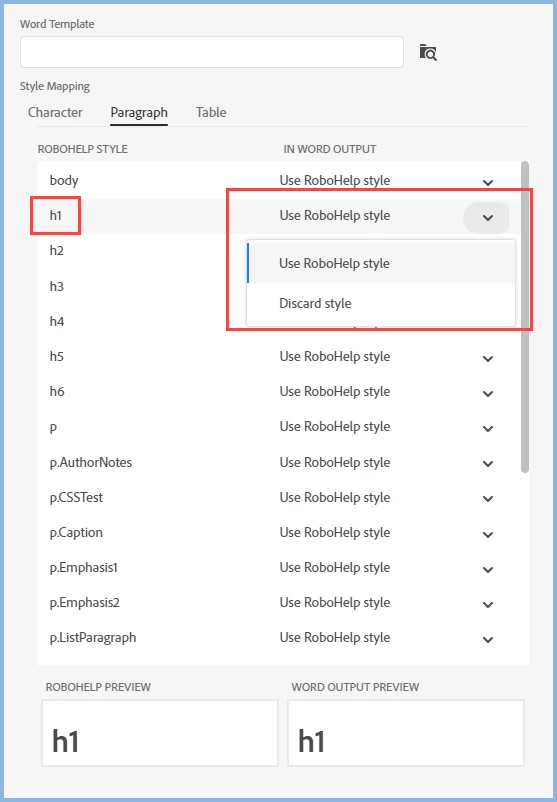You will see the same options if you select a master page with a different CSS linked to it. In this case the RoboHelp styles will be whatever you have defined in the CSS linked to the master page.