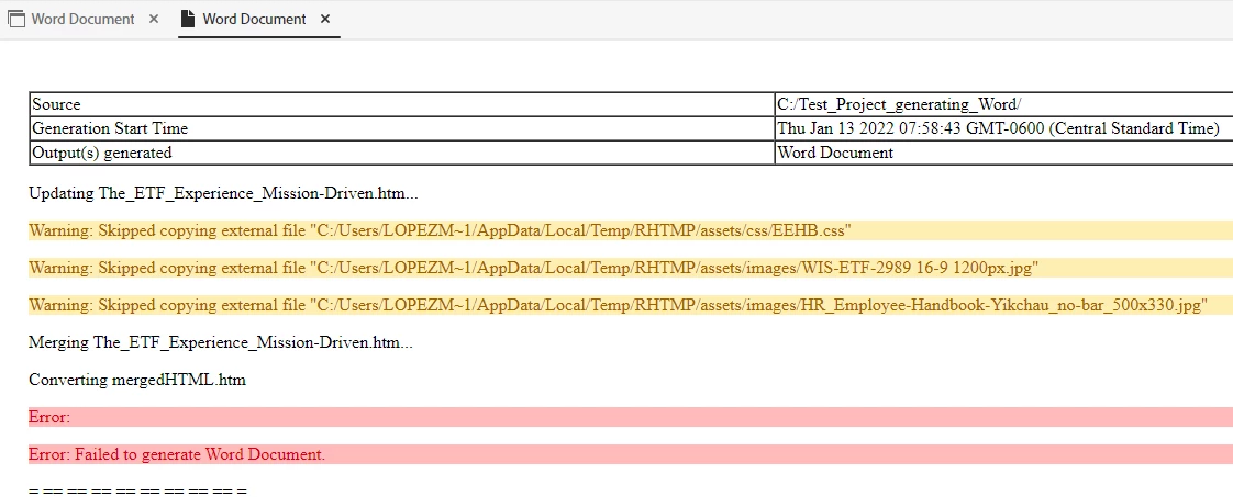 In RH 2020.6.76, when I try to generate Word output, I get the simple error message:  "Failed to generate [name of TOC]"