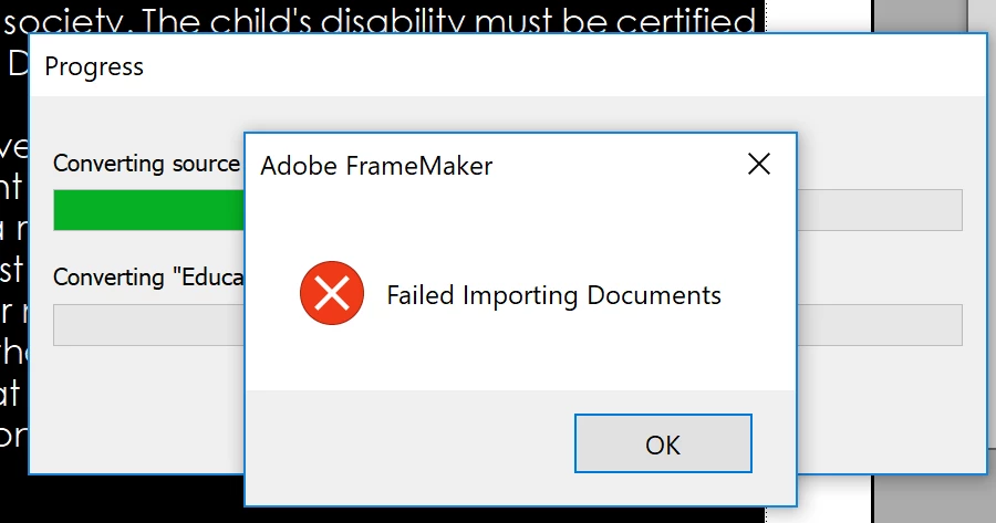 I have also tried importing books or individual fm files into RH and get this same (or similar error).