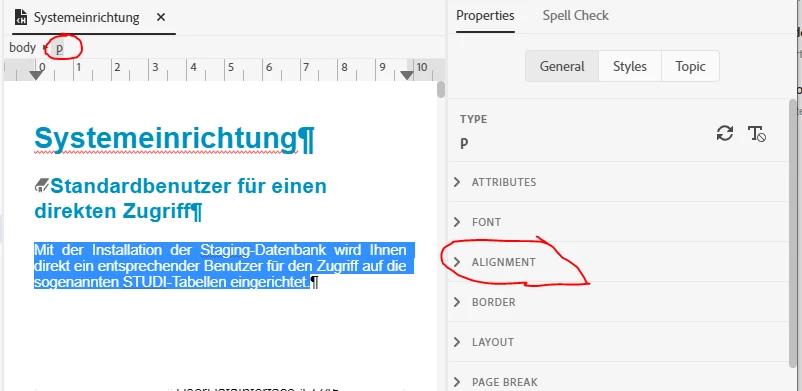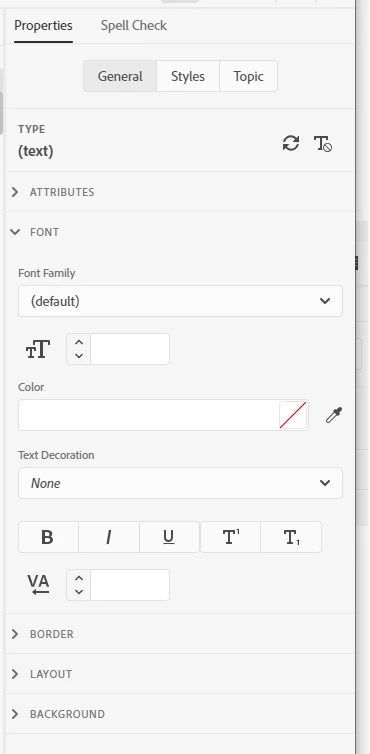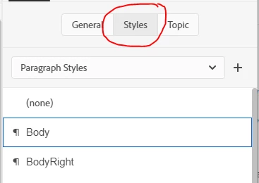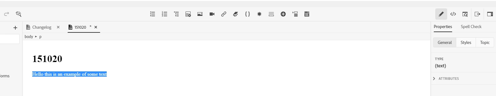 I am trying to allign some text within my project, but the option within the 'Properties Panel' isn't showing. When I go through all of the different headings in the panel, no font or text options are available to me. I have tried highlighting my text and also selecting before or after the text on the same line and still no luck. I am using a .css file on my topics and nothing appeared when I created a blank topic with no stylesheet attached to it either.