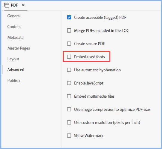 Fonts not displayed in PDF output