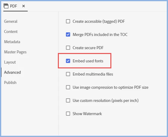 After switching to RH 2020, and moving to another machine, fonts are not being reflected in the PDF output - despite the correct stylesheet being used. It does reflect the colours, and the settings clearly reflect those fonts in use.